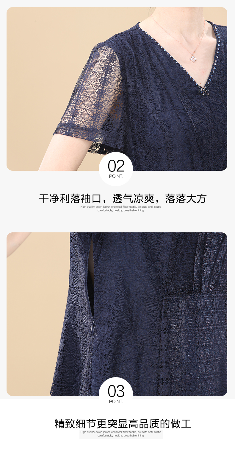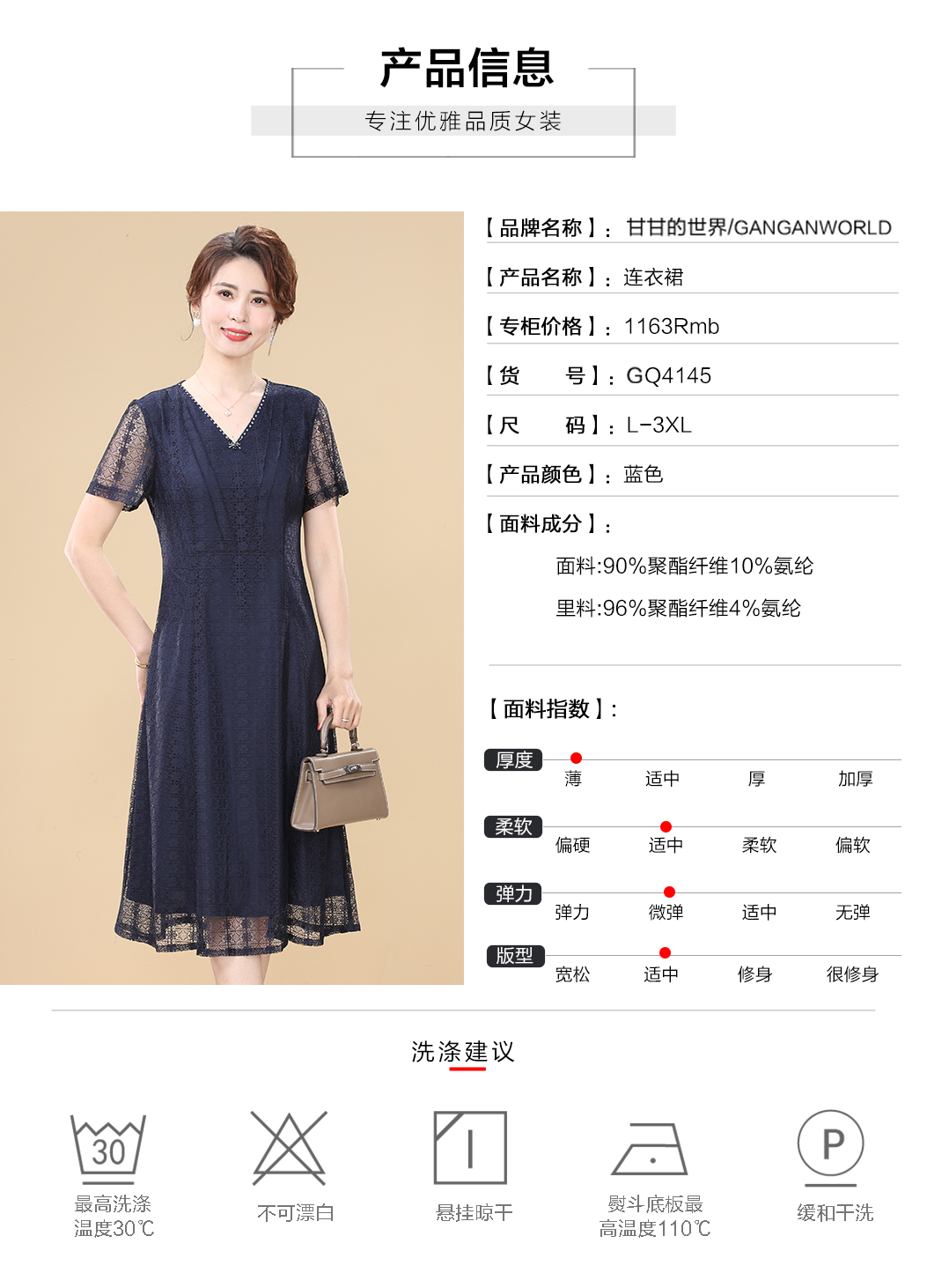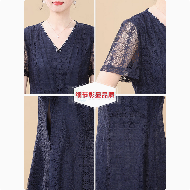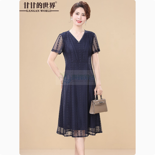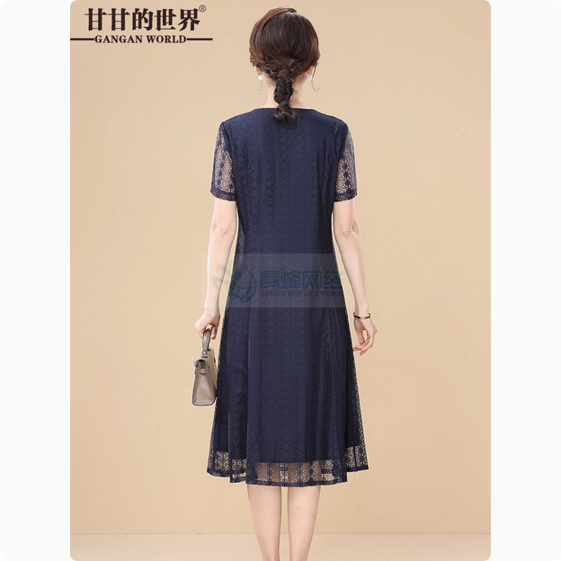 甘甘的世界2025夏新款时尚中年女士减龄连衣裙洋气短袖网纱中...