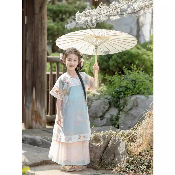 兮兮家夏季新款格格服女童汉服古装清宫新中式中国风套装花笺汐